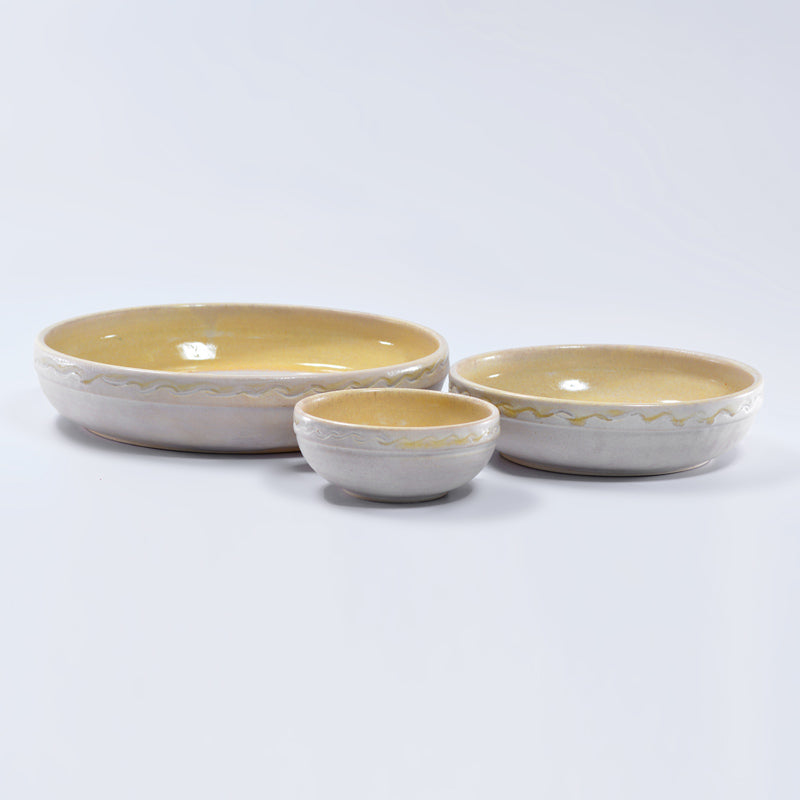 An everyday essential. These practical bowls are great for everything from salads, rice, soups and dips. These handmade set of 3 bowls in different sizes are a beautiful arrangement for every dinner table.