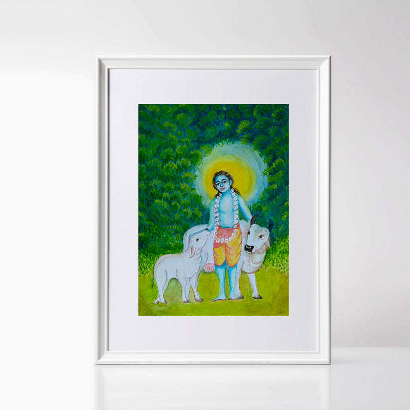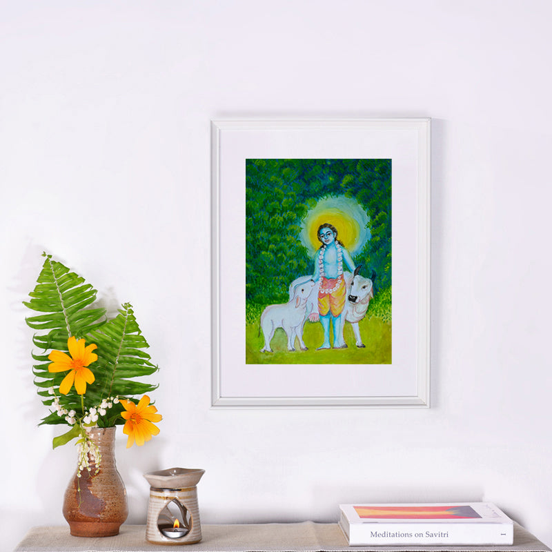Make your living space meditative with Gopala Painting, framed print by Purnam's Krishna Art Collection—an exclusive watercolour masterpiece. Crafted by Usha Aravind, a distinguished artist from the Savitri Art Sangha, is among the special offerings for Siddhi Day 2024, celebrated on 24th November at the Sri Aurobindo Ashram. A sacred blend of artistry and spirituality. 🖼️✨