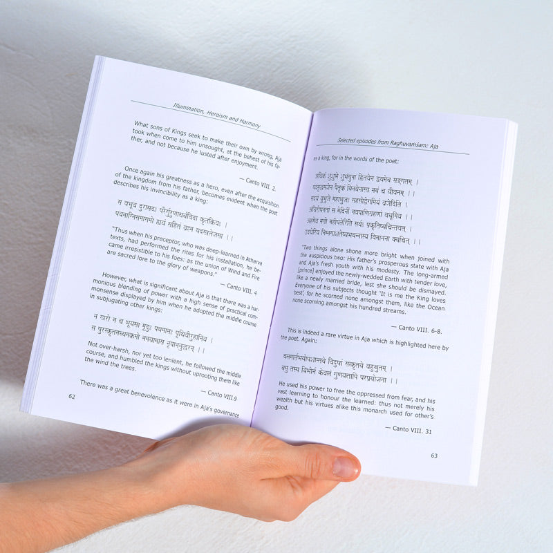 A few extracts from the poem in Sanskrit from Kalidasa with English translation. The poet describes a number of kings belonging to the House of Raghu, which is the dynasty to which Sri Rama belonged.