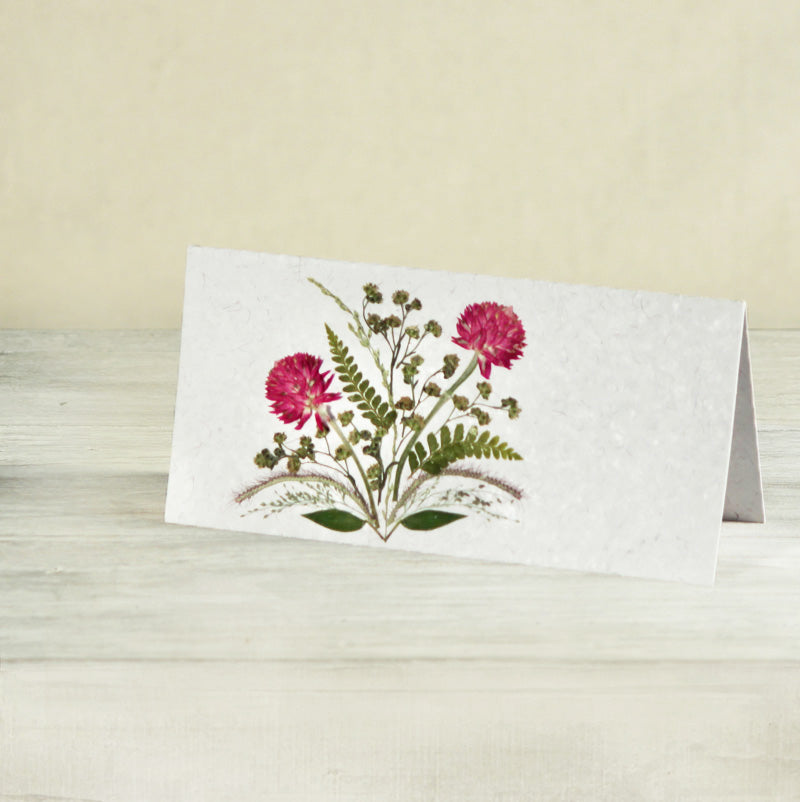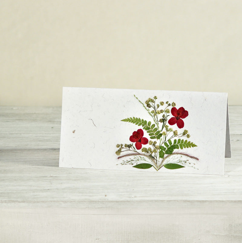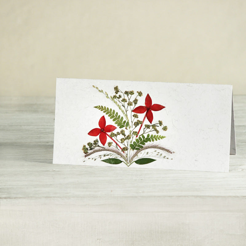 An array of beautiful and intricate designs made with delicate flowers and grasses. Write your words of love and joy in these gorgeous handmade flower cards from the Unit Shradhanjali. Each card has a different flower blooming on it. Each card is individually handcrafted.