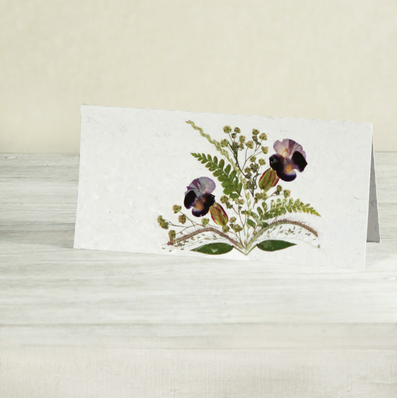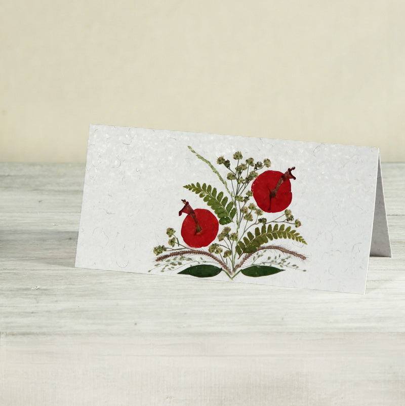 Materials used: The paper is hand-made from recycled cotton, enhanced with natural fibres like straw, gunny, or wool. Flowers are organically grown, then handpicked and pressed each day