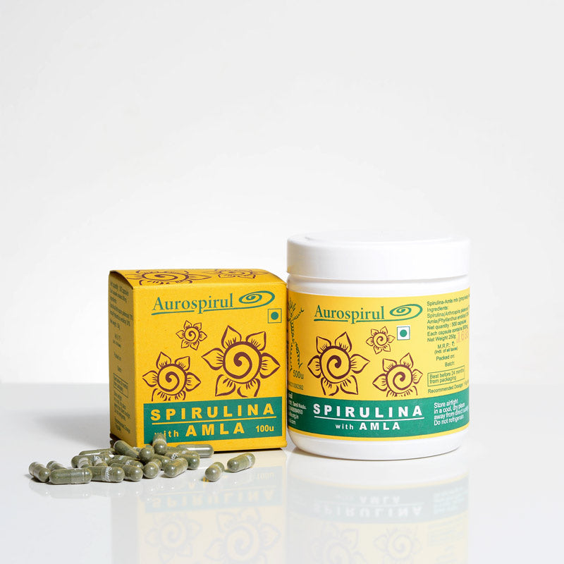 Ingredients: Each capsule contains 350 mg of Spirulina and 150mg of Amla.