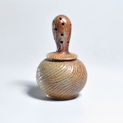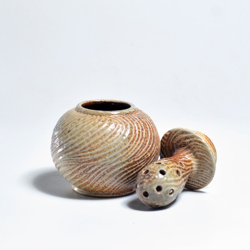 SODAFIRED STONEWARE, inspired by a korean design, the carved surface has responded very beautifully to the magic of soda-firing!
