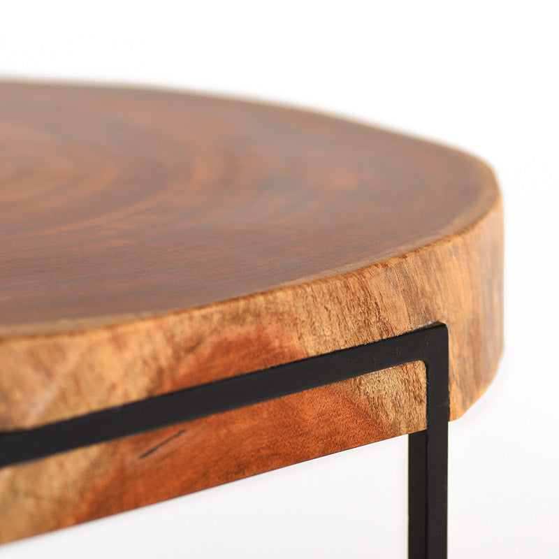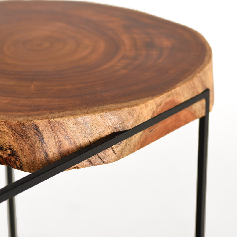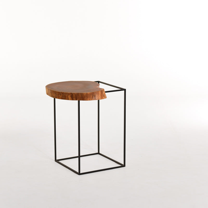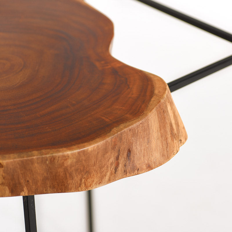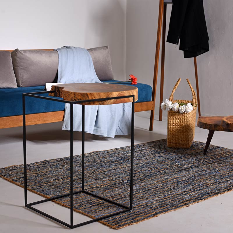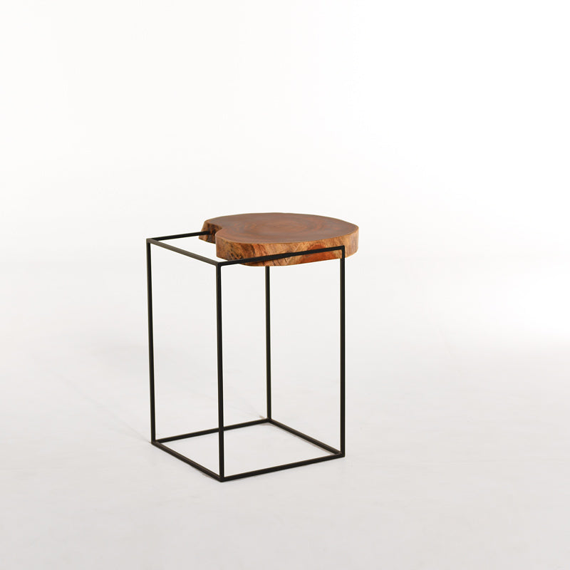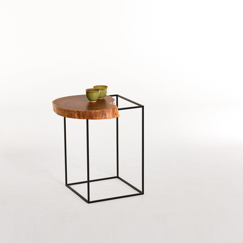 Can be used to enhance your entrance foyer. The design with natural-edged wooden top and metal legs has its own sublime presence.