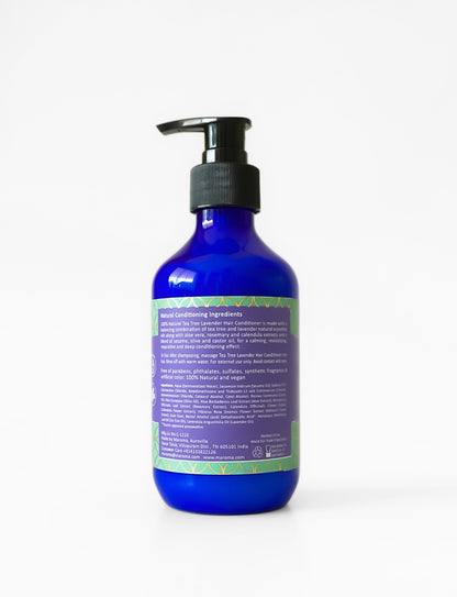 Tea Tree Lavender Hair Conditioner is made with a balancing blend of tea tree and lavender natural essential oils along with aloe vera, rosemary and calendula extracts and a blend of sesame, olive and castor oil, for calming, revitalising, reparative and deep conditioning effects.