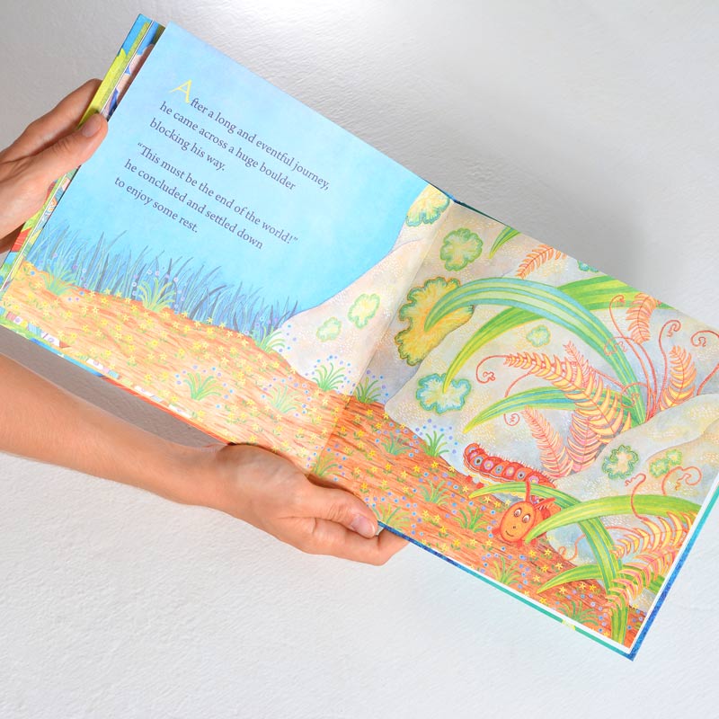 This beautifully illustrated book tells us the adventures of a very bold caterpillar. Although that caterpillar has many legs, his dream of traveling the whole length and breadth of the world remains unfulfilled until he meets… a ladybird. For children from age 4 to 8.