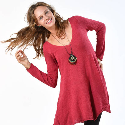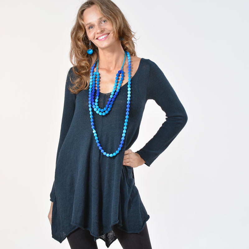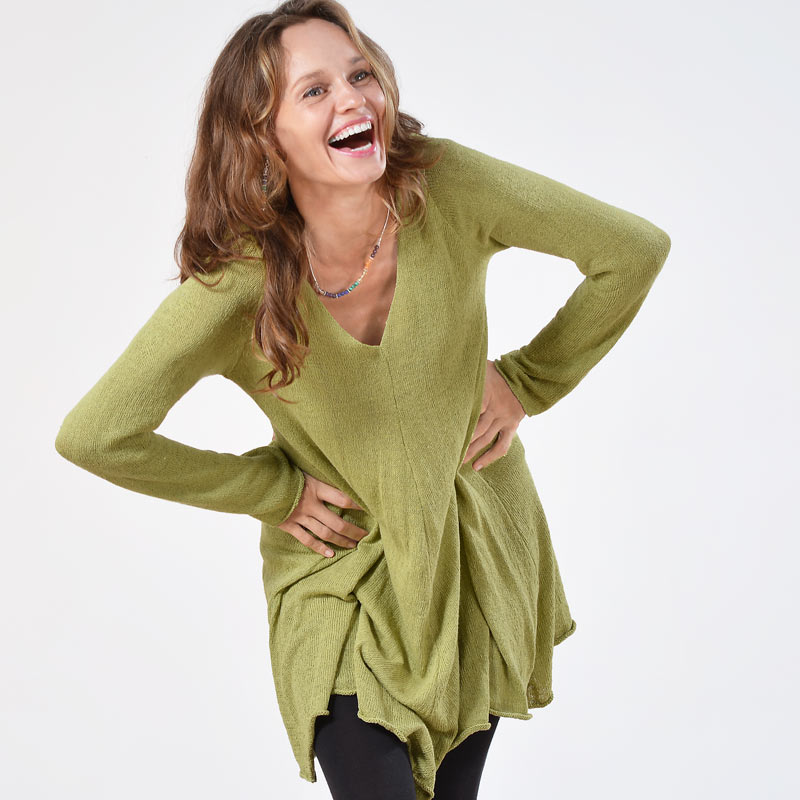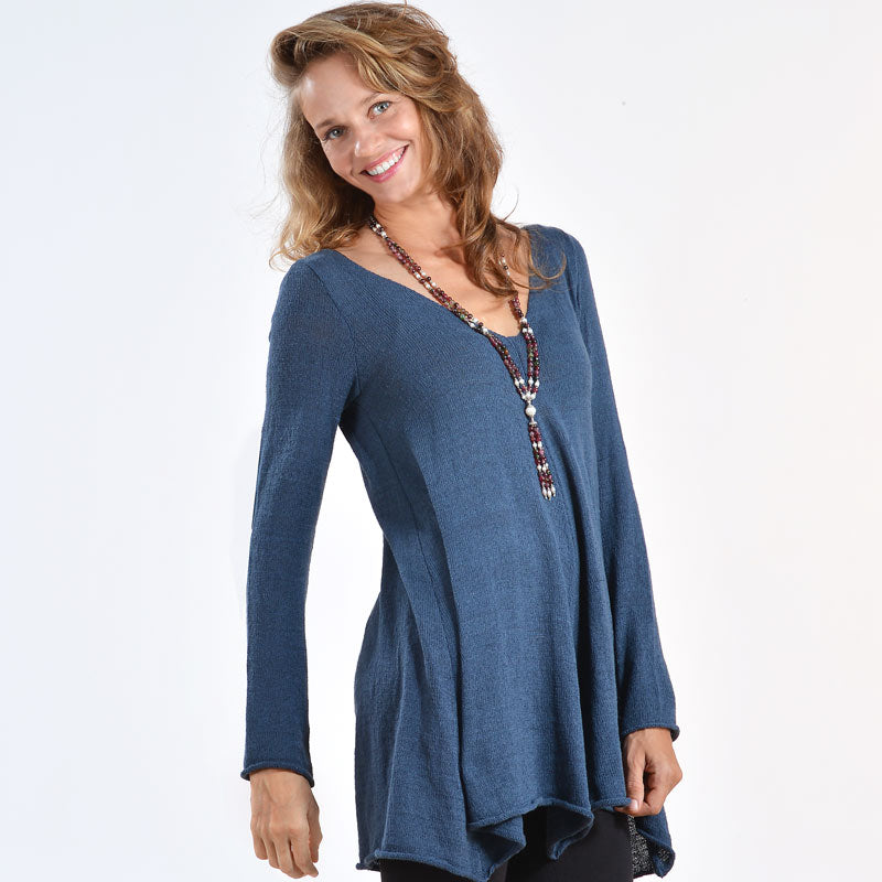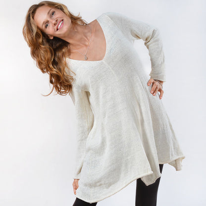 Maximum style, minimum effort. This flattering, versatile silk tunic is our solution to every occasion. The V-Neck and long flair silhouette will give you a comfortable and cozy but elegant look.