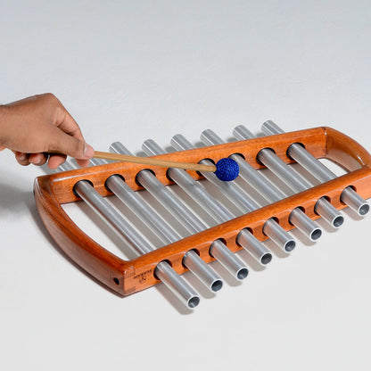 This is a novel development of SVARAM and we are happy to have found a simple design to satisfy a multipurpose use of this very versatile sound source. The strong resonating quality of the tube is equally attractive to the beginner as well as the creativity of a performer. A special feature of the instrument is that it can be played and swung and rotated at the same time to create a captivating atmospheric sound in your environment.