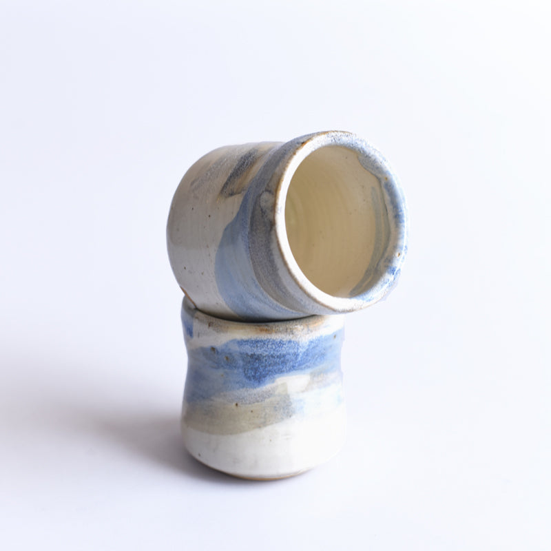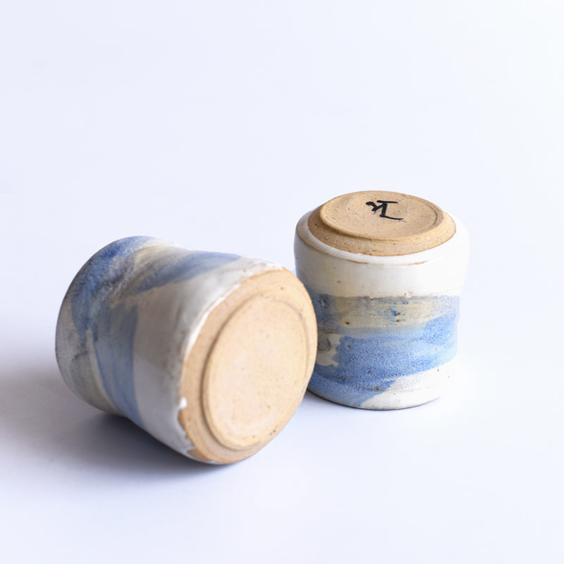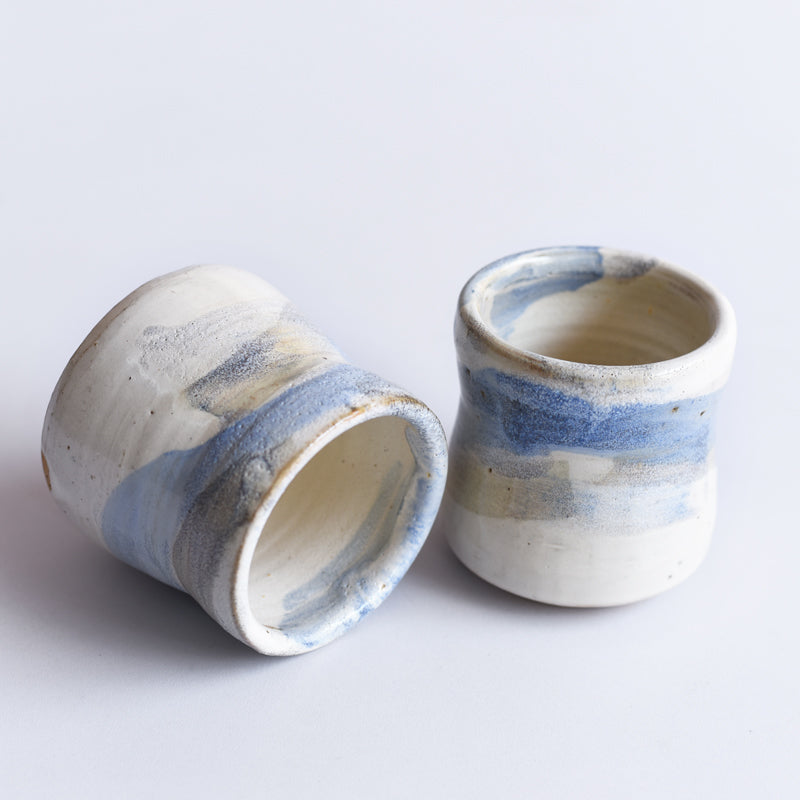 Tumblers in soft tones with blue shades of sea waves to remind us of the ease of the sea side. Waist in the midline gives a good hold to this tumbler