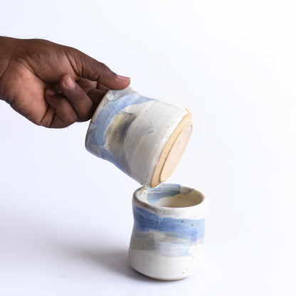 Product Information: Each piece is completely handmade, right from the clay making to wheel-thrown, to sanding the bottom of the finished mug after the firing. This is high-fired stoneware. It is dishwasher, and microwave safe. Lead-free. Crafted with love.