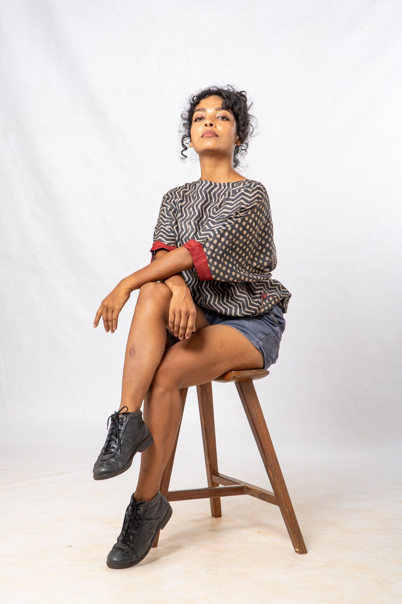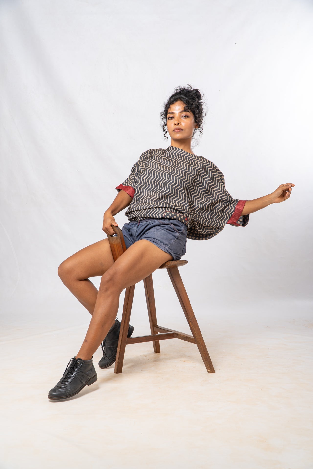 Tussar Silk Cheveron Patterned Boat Neck Top