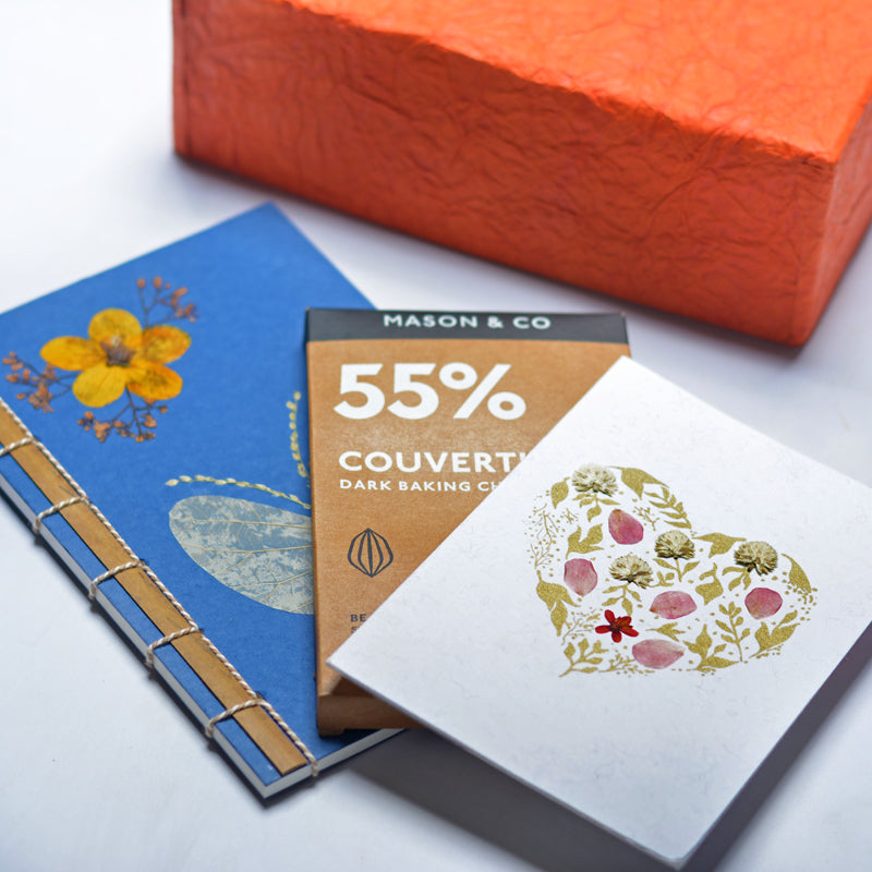 - Bamboo Notebook - A beautifully handcrafted notebook set in three versatile sizes, perfect for notes, sketches, and reflections. Made with recycled cotton paper and pressed floral designs, each piece celebrates nature’s beauty.