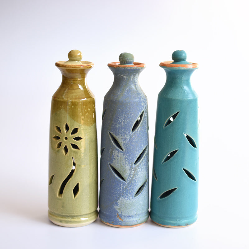 This ceramic Venezuelan incense holder by Mandala Pottery is specially designed to keep the ashes falling inside the holder and permits only the aroma to circulate around. It is a unique eye-catcher for your home decor.