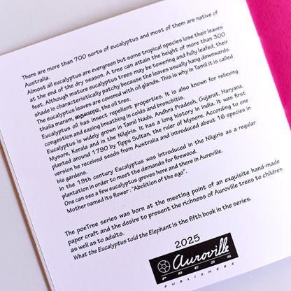 The poeTree series was born at the meeting point of an exquisite handmade paper craft and the desire to present the wealth of Auroville trees to children as well as to adults.
